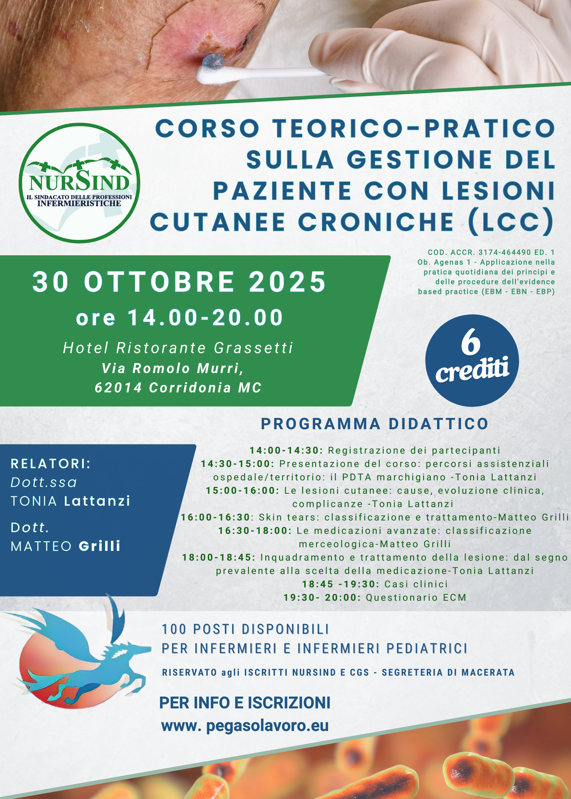 CORSO TEORICO-PRATICO SULLA GESTIONE DEL PAZIENTE CON LESIONI CUTANEE CRONICHE (LCC)