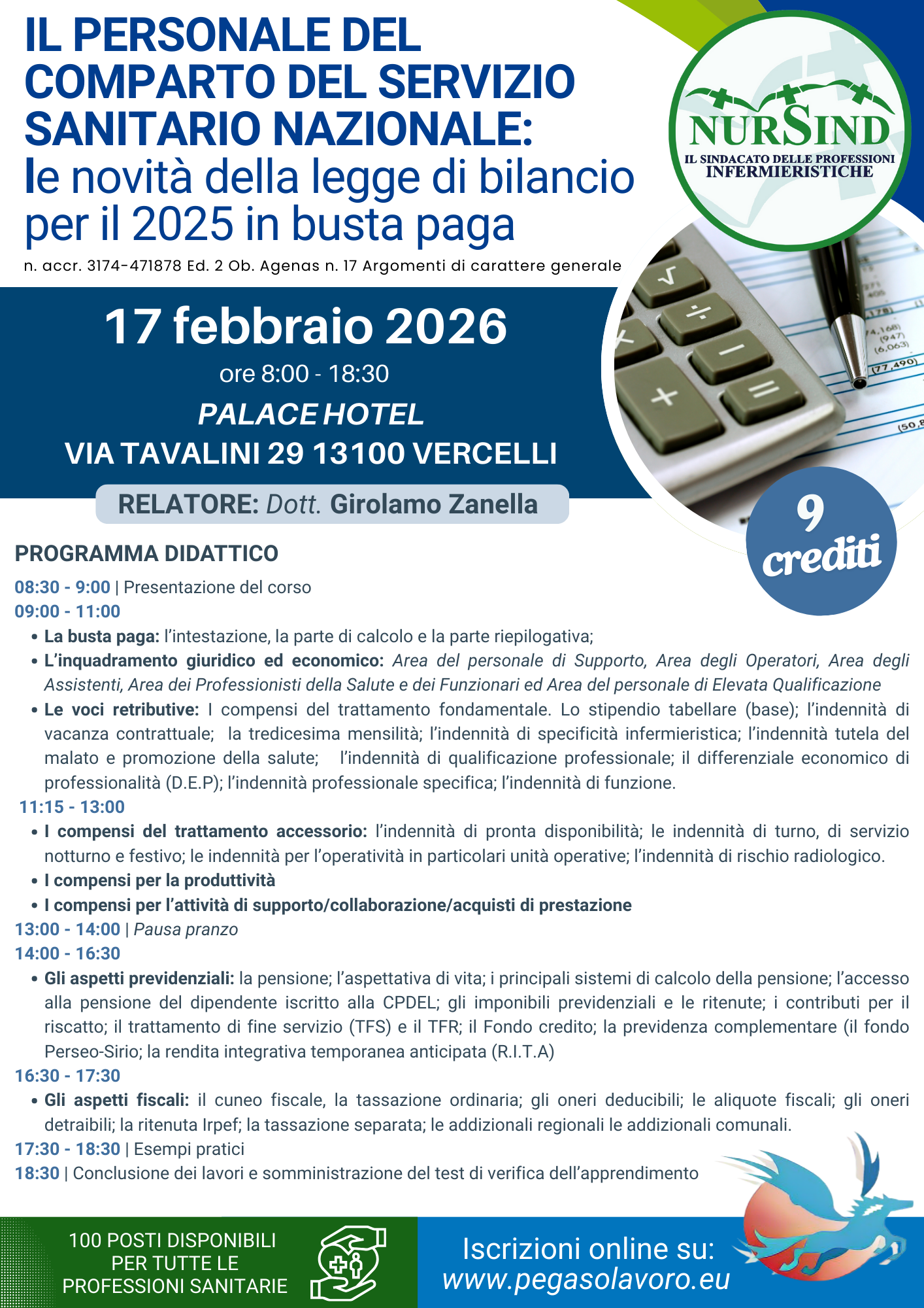 - Iscritti al Sindacato Nursind e CGS: gratuito