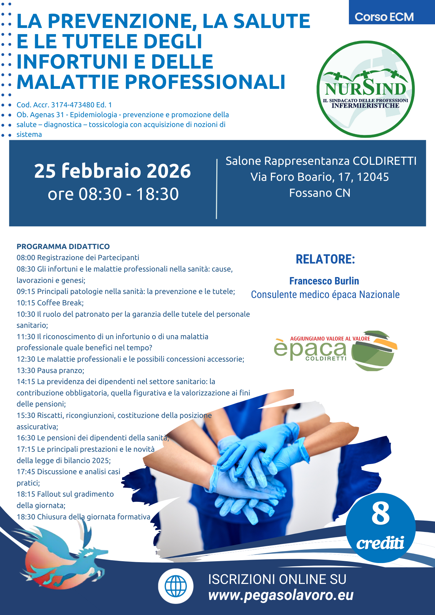 10:30 Il ruolo del patronato per la garanzia delle tutele del personale sanitario;
