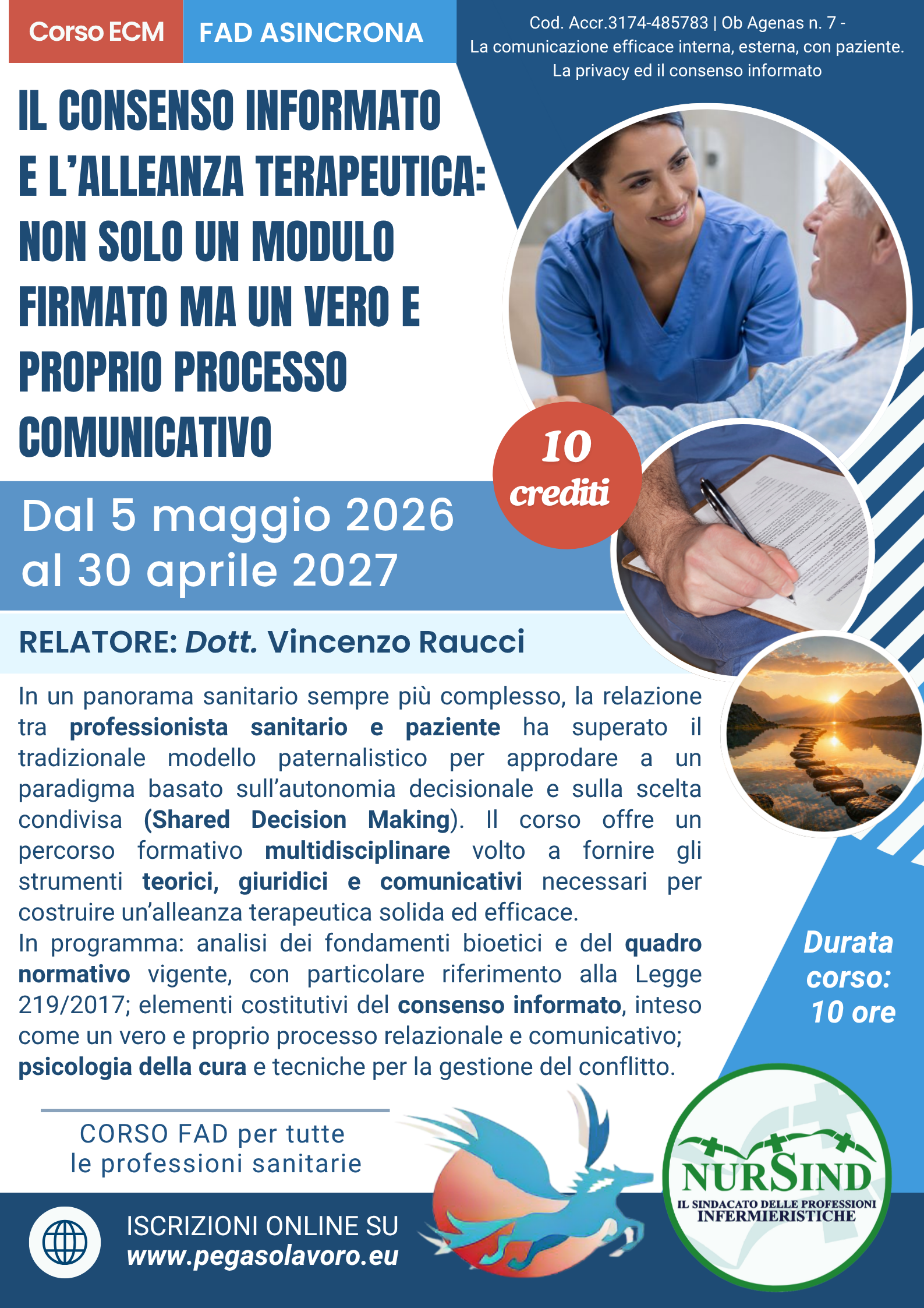Il programma si articola attraverso l’analisi dei fondamenti bioetici e del quadro normativo vigente, con particolare riferimento alla Legge 219/2017. Verranno approfonditi gli elementi costitutivi del consenso informato, inteso non come mero adempimento burocratico, ma come un vero e proprio processo relazionale e comunicativo.