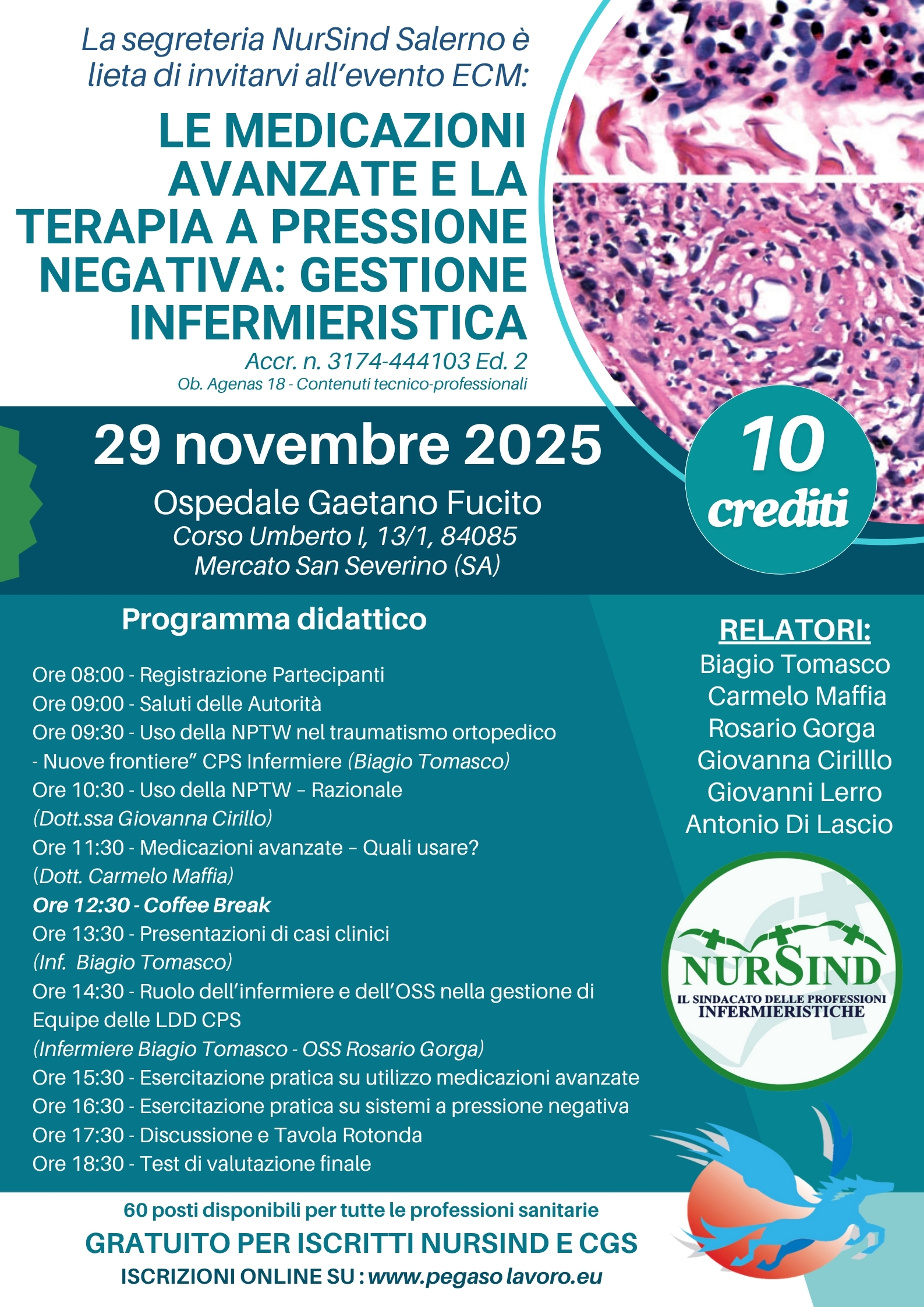 - Gratuito per Iscritti Nursind e CGS: gratuito