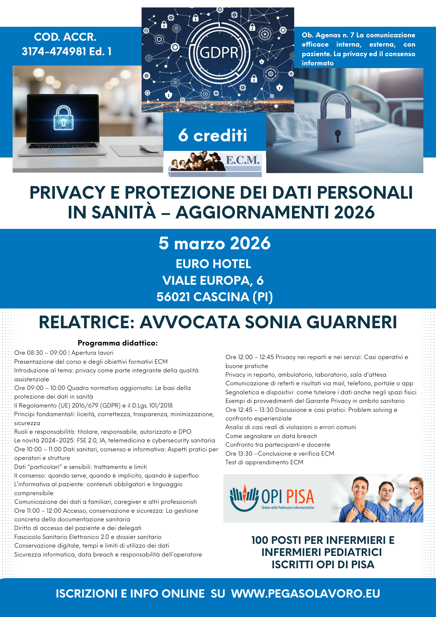 - Analizzare gli aspetti pratici della gestione del consenso, dell’accesso ai dati e della condivisione delle informazioni sanitarie.