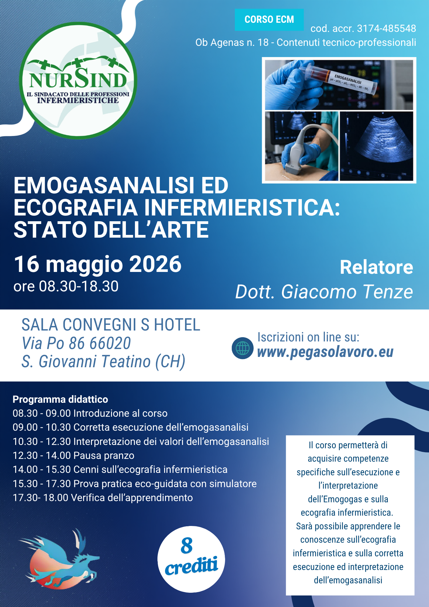 Apprendere le conoscenze dell’ecografia infermieristica ed corretta esecuzione ed interpretazione dell’emogasanalisi