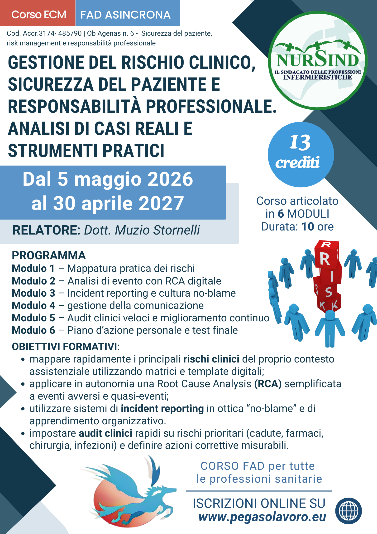 GESTIONE DEL RISCHIO CLINICO, SICUREZZA DEL PAZIENTE E RESPONSABILITÀ PROFESSIONALE – ANALISI DI CASI REALI E STRUMENTI PRATICI